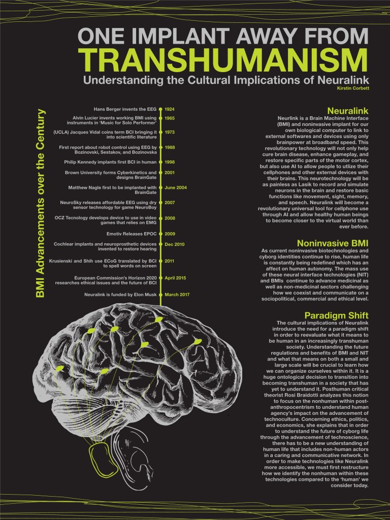 I designed this poster based on my academic paper titled, “One Implant Away from Transhumanism: Understanding the Cultural Implications of Neuralink.”