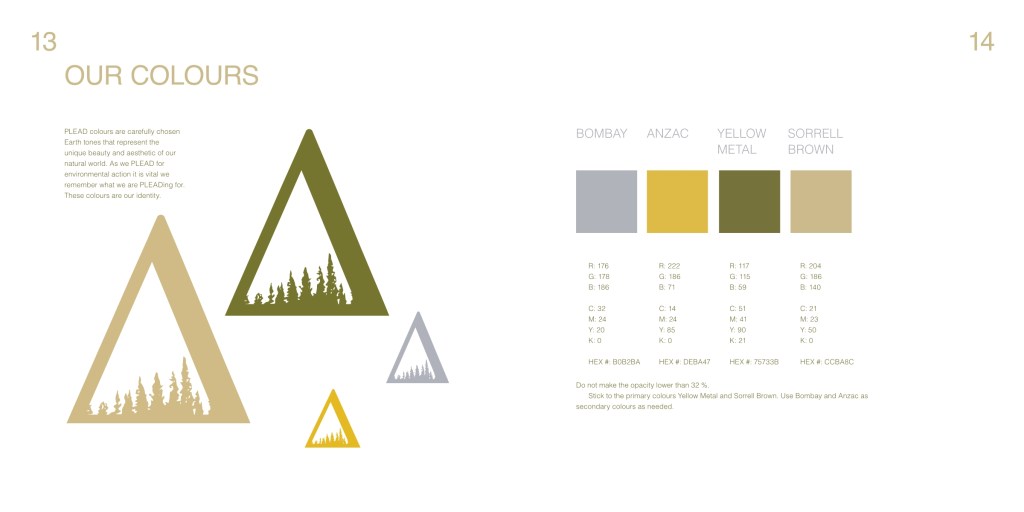 I designed this brand guide based on the mock company “PLEAD,” I invented to practice my professional graphic design work including logos, colours, and typography.