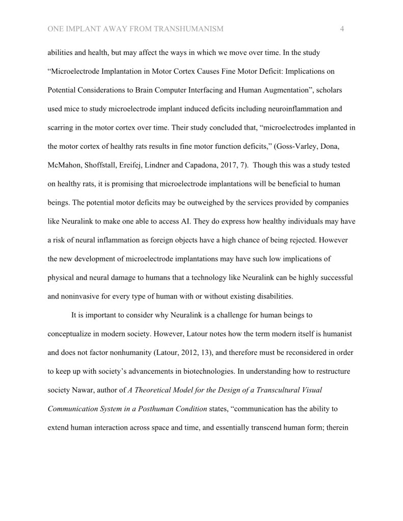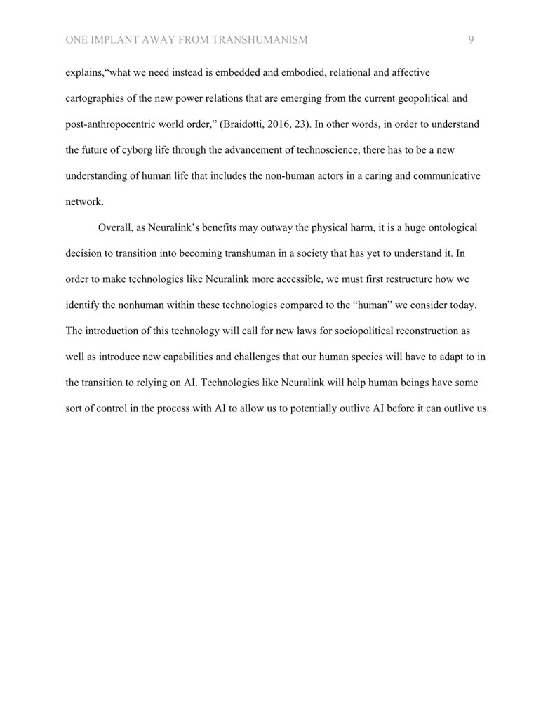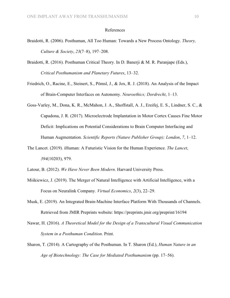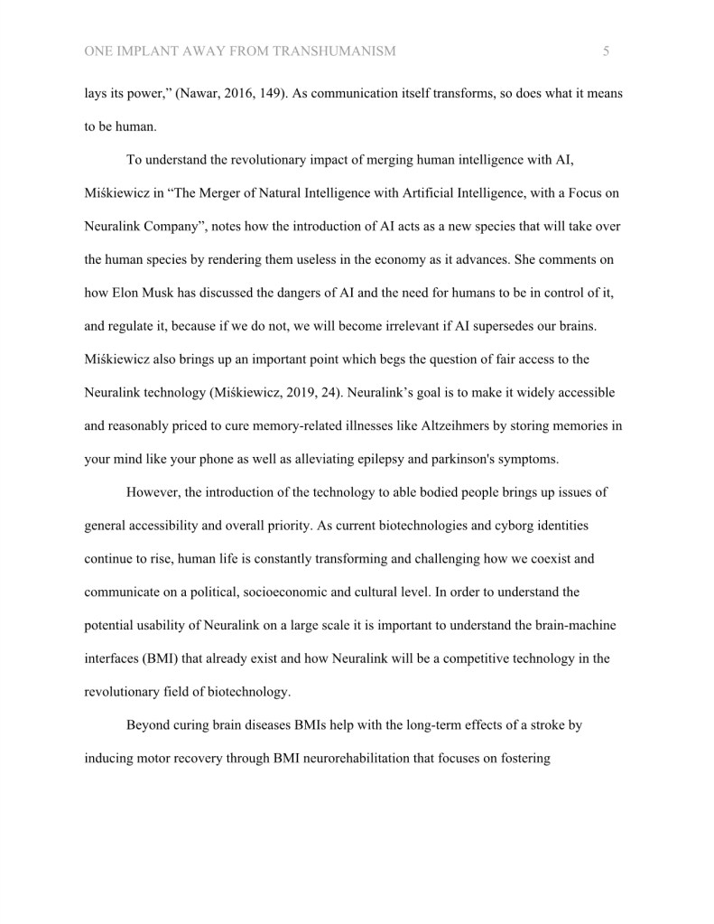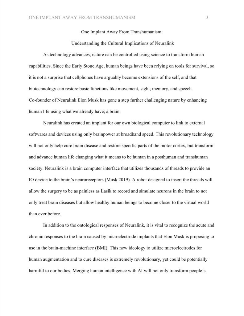 During my masters degree, I wrote an essay titled, “One Implant Away from Transhumanism: Understanding the Cultural Implications of Neuralink.”
