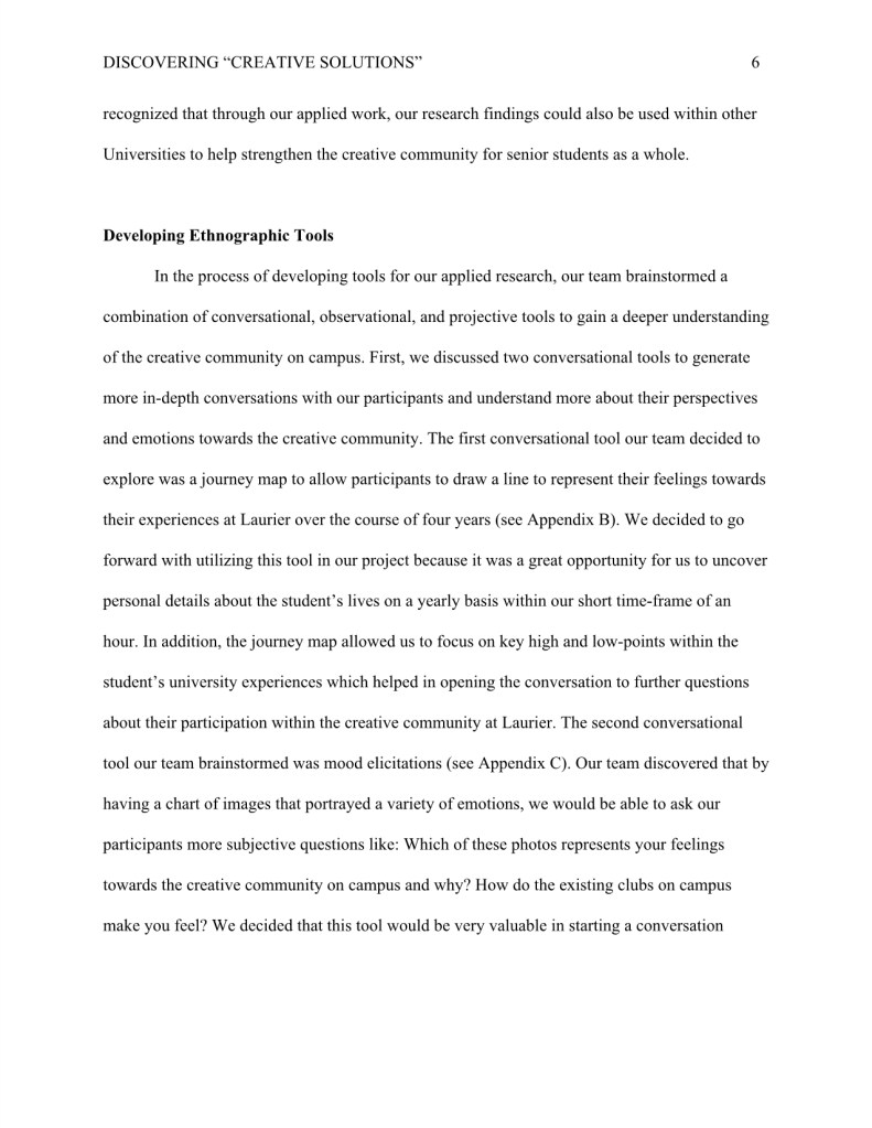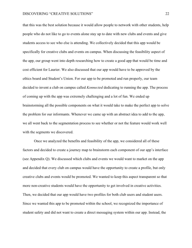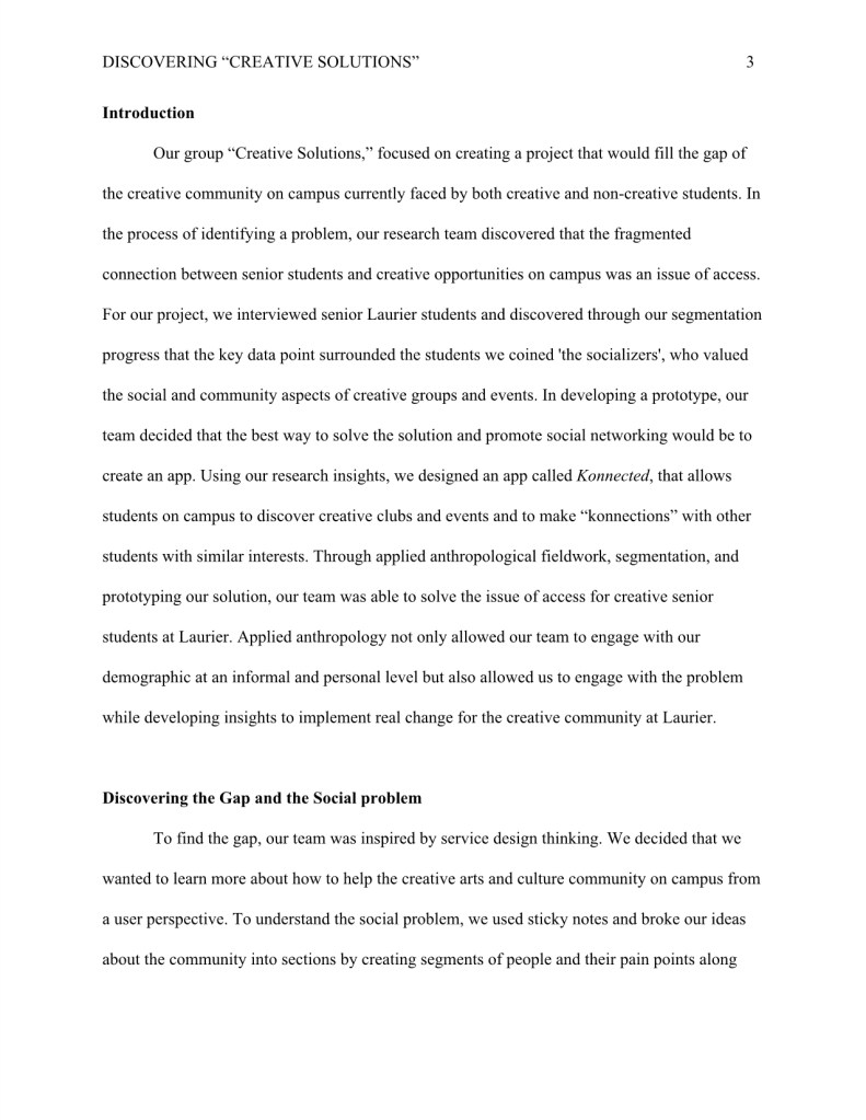 For my Applied Anthropology major research project, I wrote, “Discovering ‘Creative Solutions’ to keep Laurier Senior Students Konnected.”
