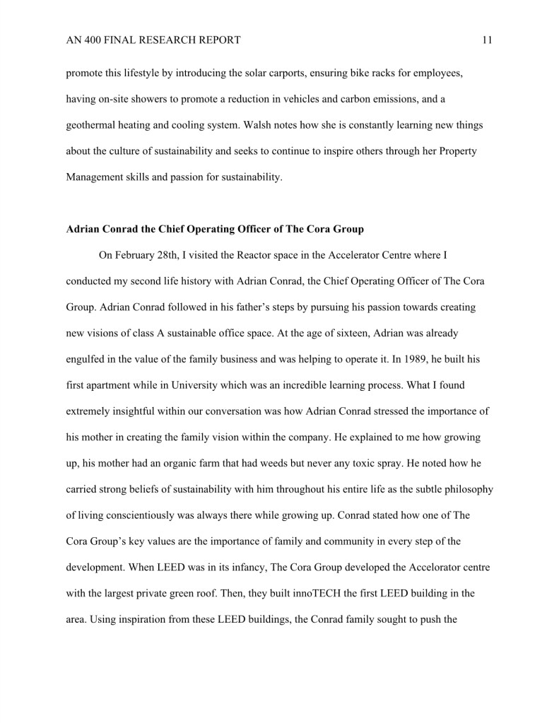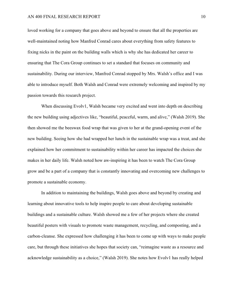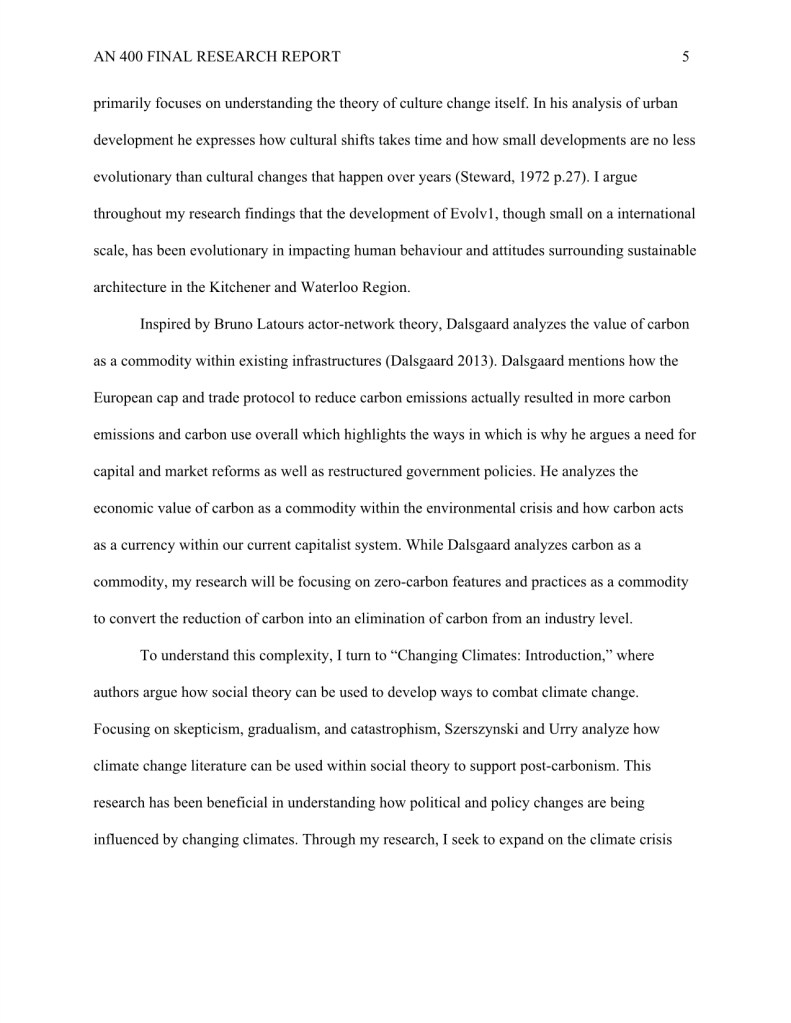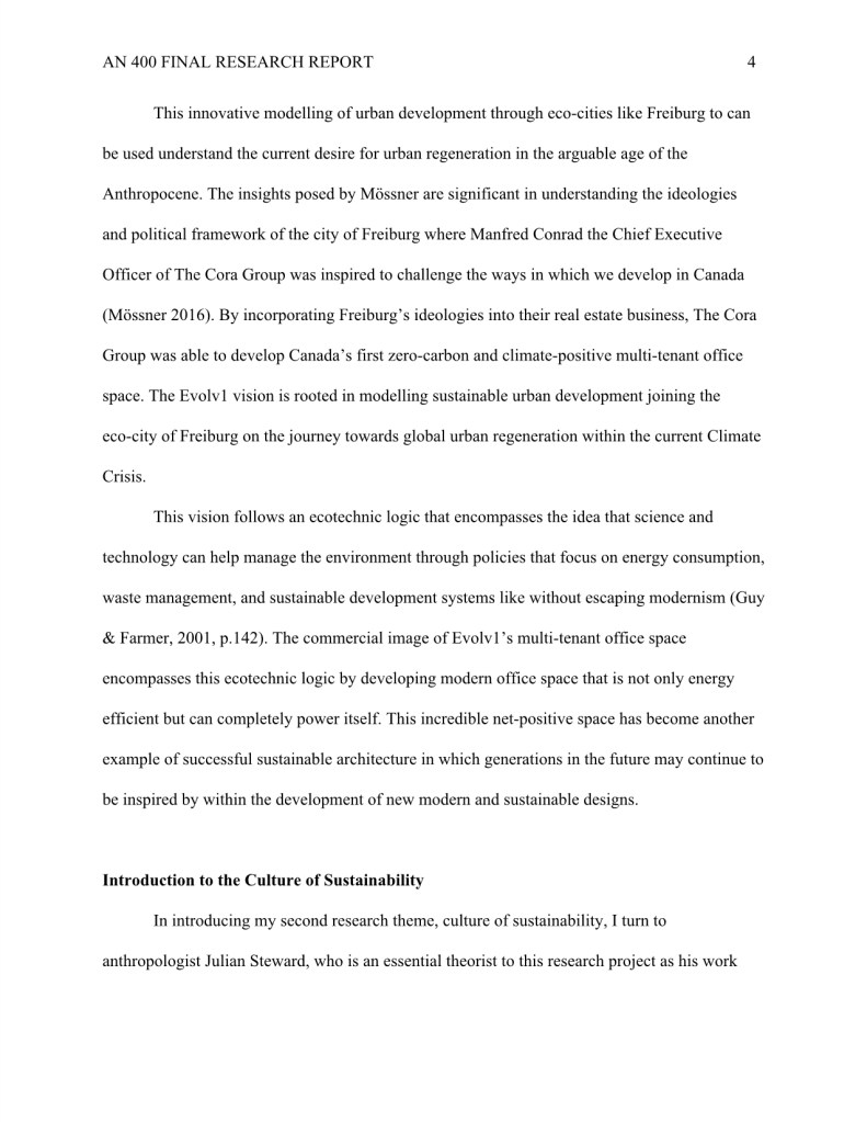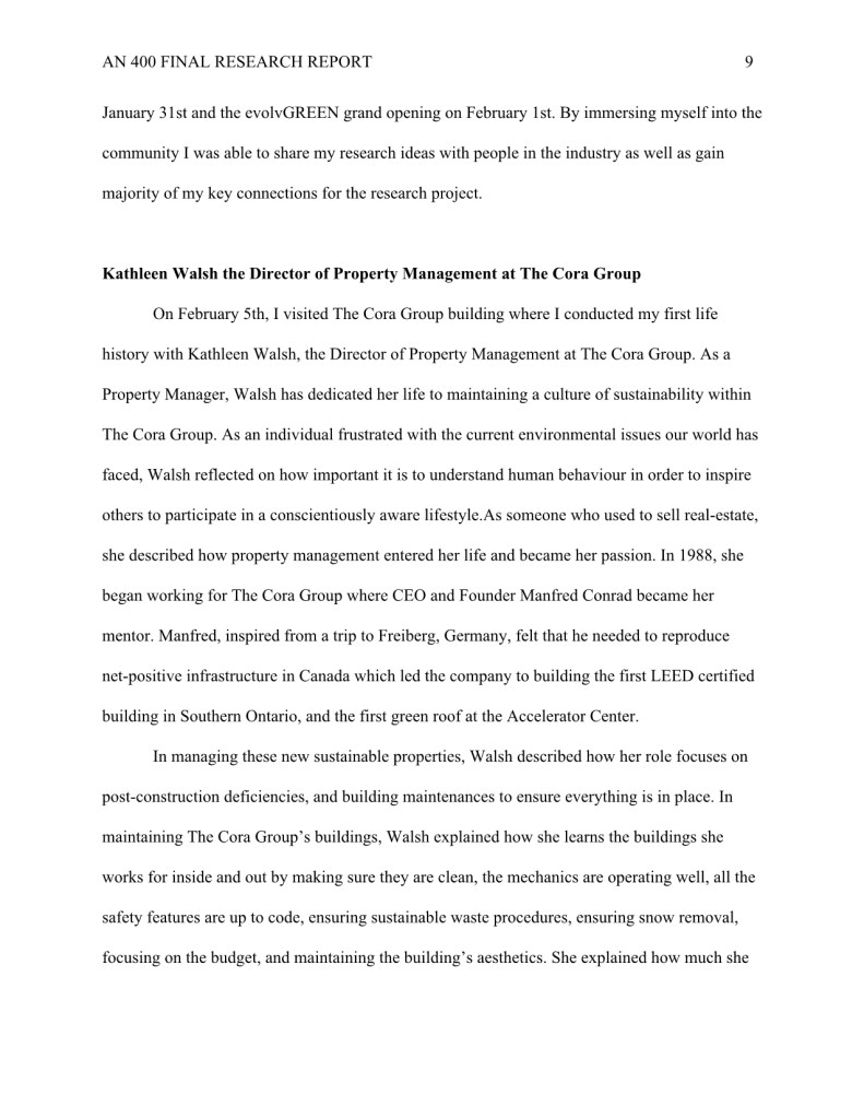 My research “How Evolv1 is Inspiring the Region of Kitchener and Waterloo to Foster a Climate Positive Business Community through New Sustainable Urban Development,” was completed during my undergraduate degree in Anthropology.